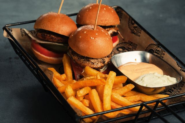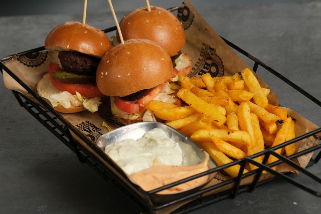 1 mini kalamar burger, 1 mini mushroom burger, 1 mini hot corn burger
